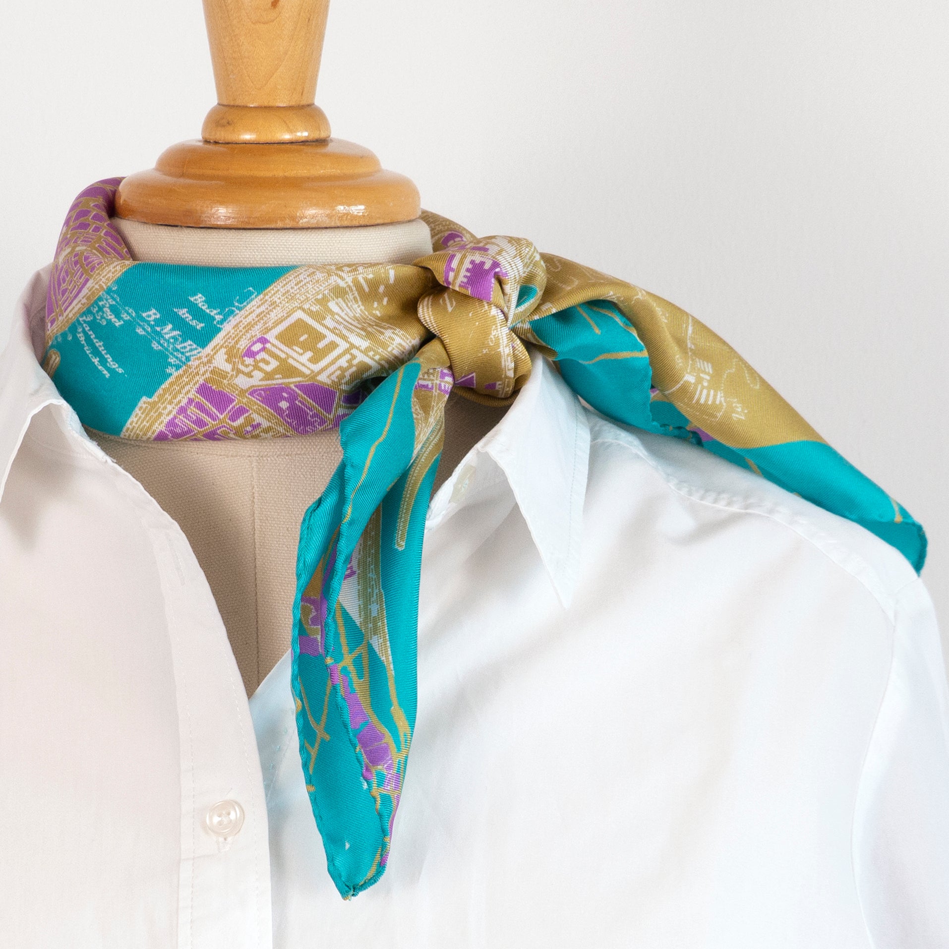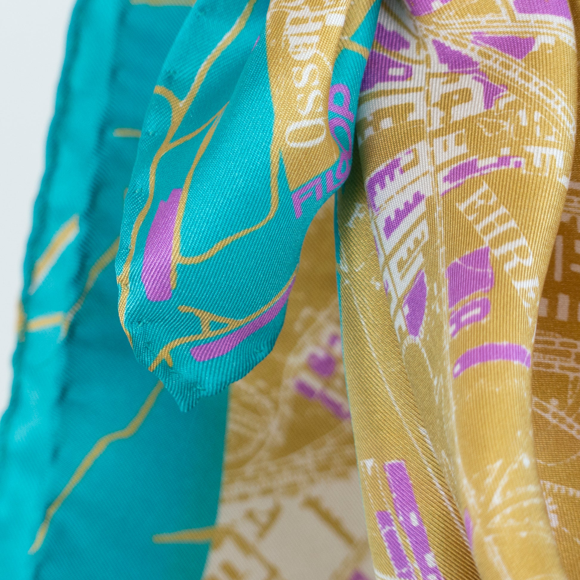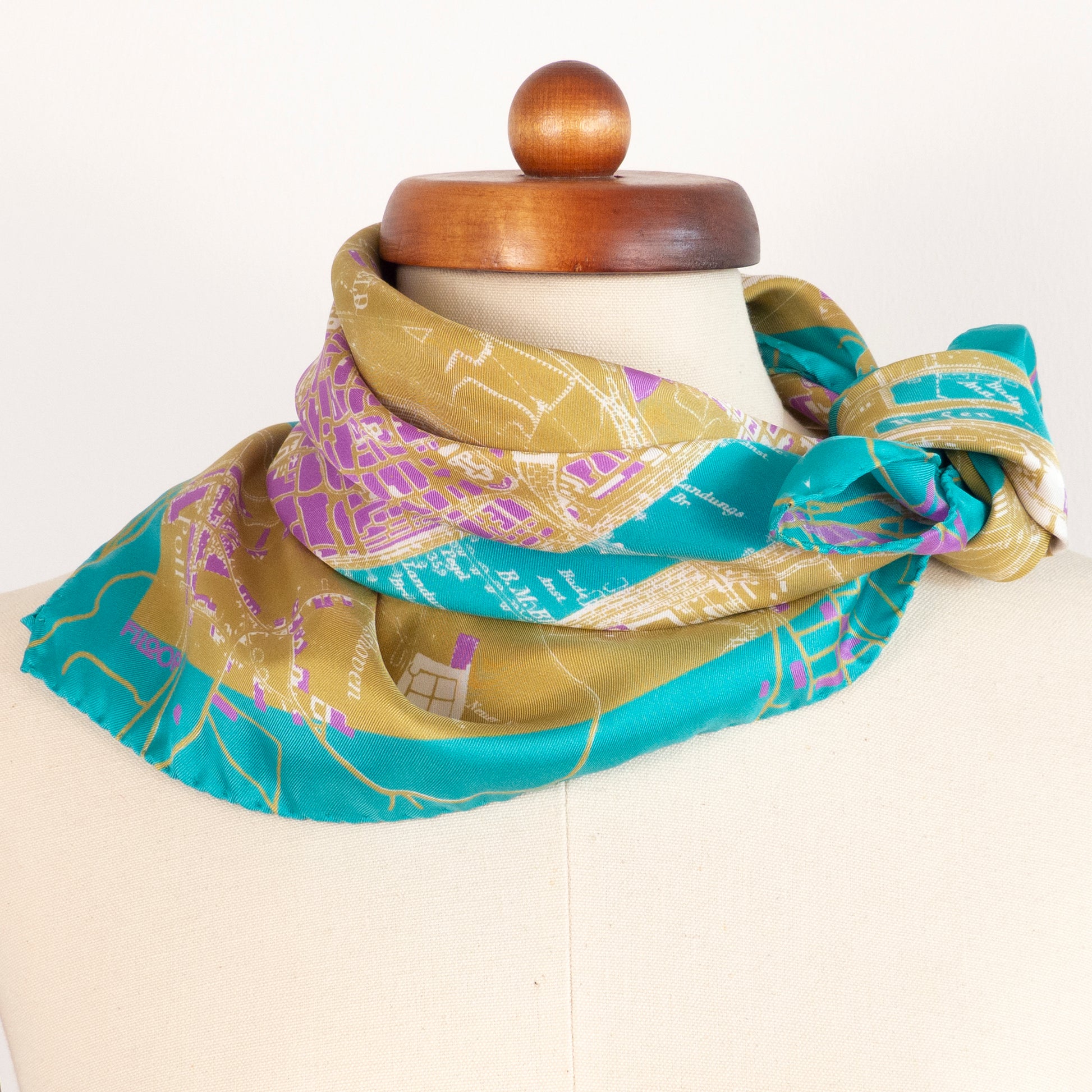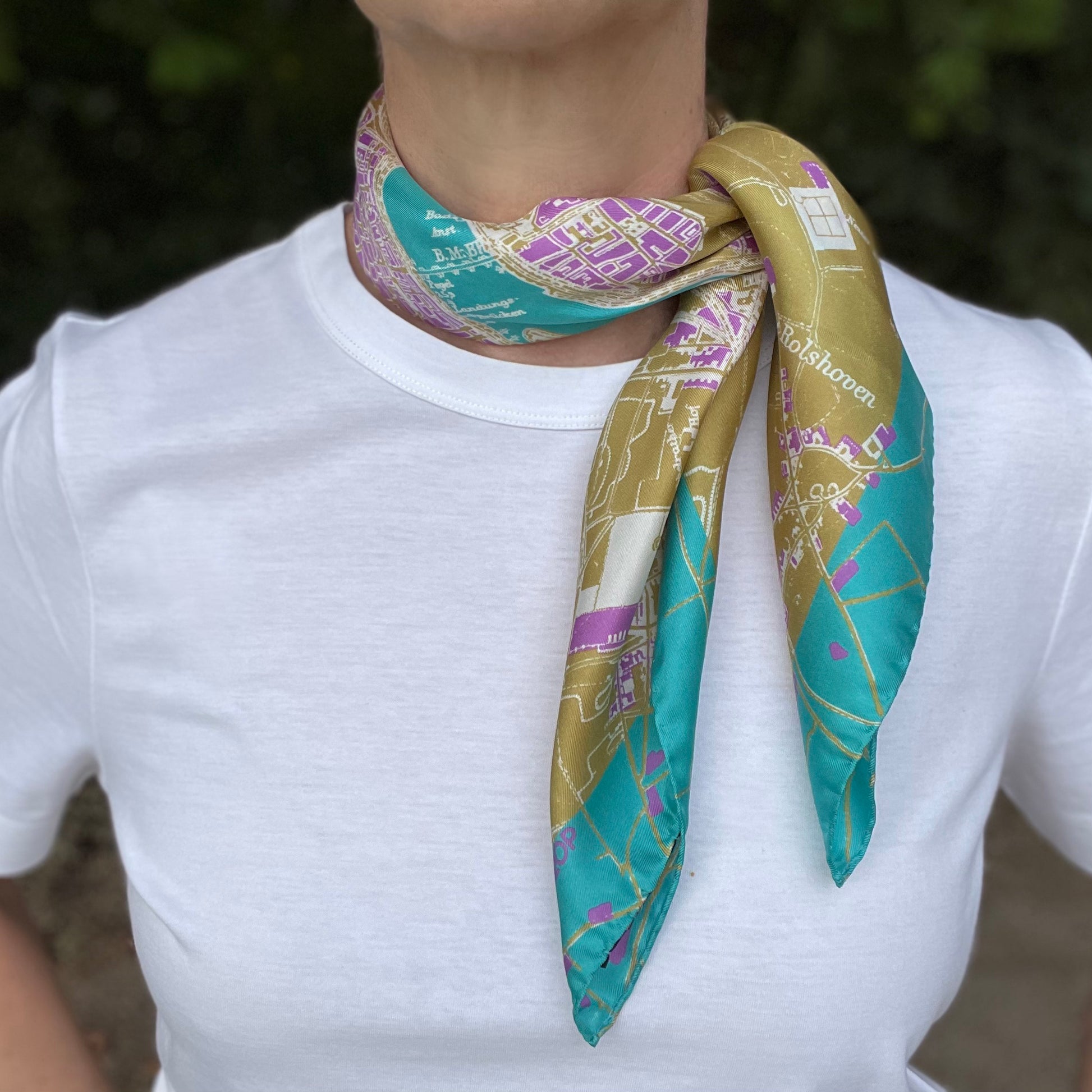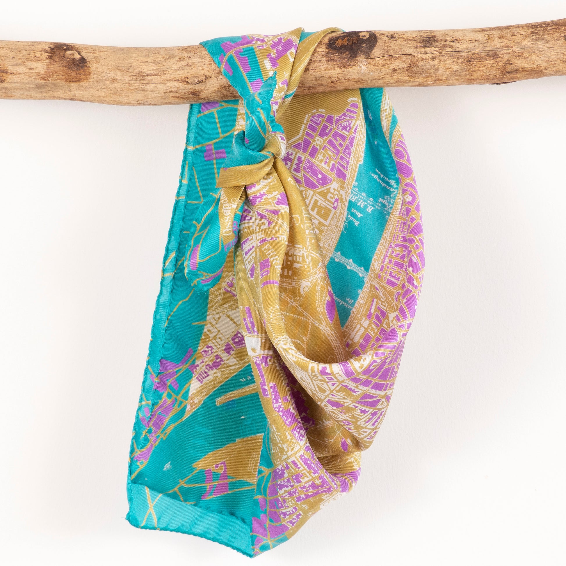 Dieses ausdrucksstarke kleine Seiden-Foulard mit dem subtilen Design des Stadtplans ist ein universelles Accessoire.