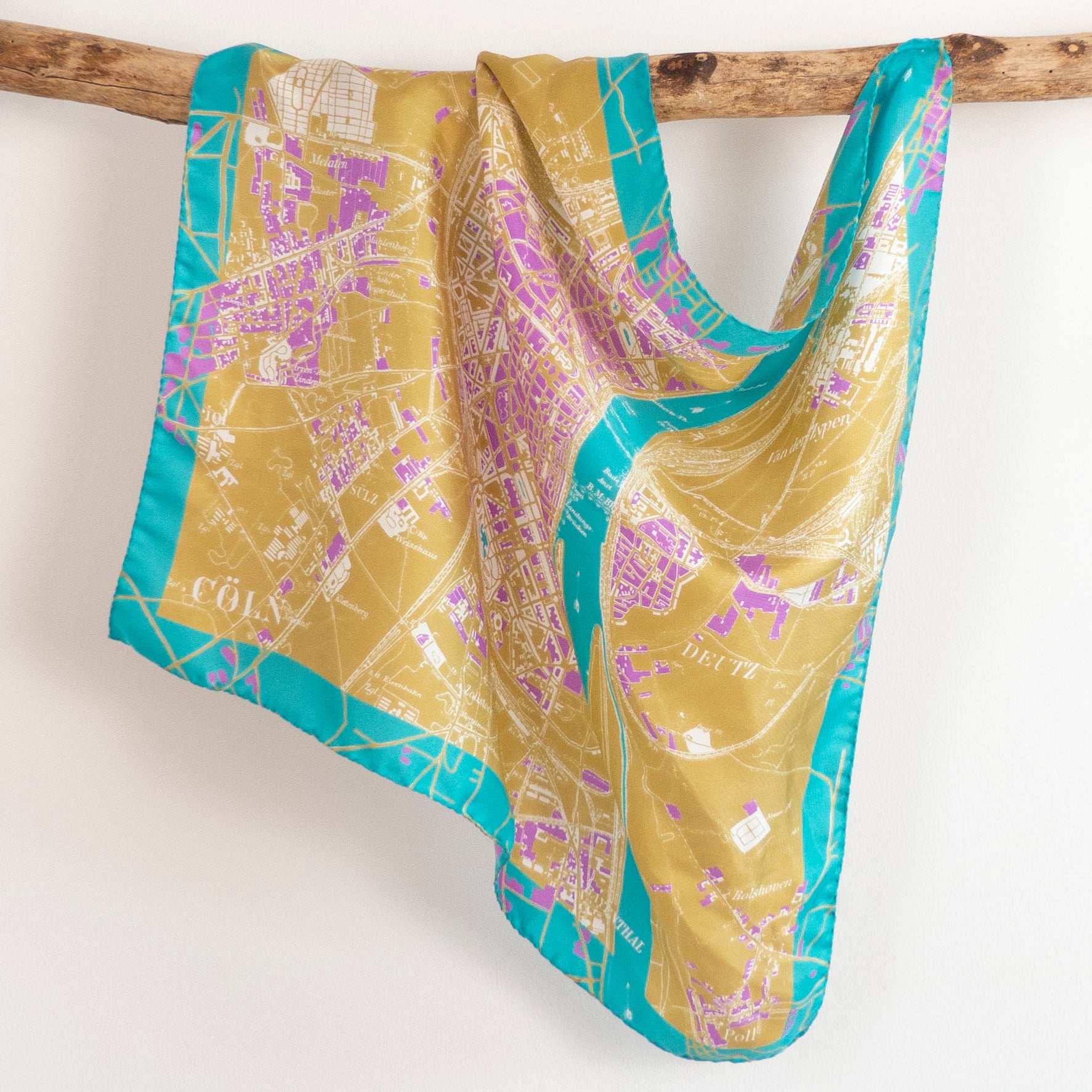 Kleines Seidencarée mit stilisiertem Stadtplan von Köln